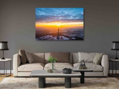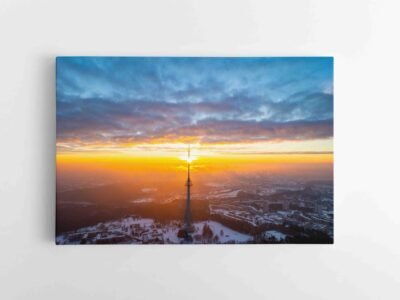 Žiemiškas Vilniaus Televizijos bokštas su Saule (JG00002574)