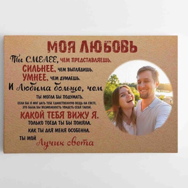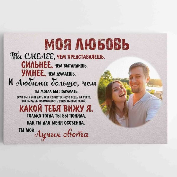 Personalizuotas Paveikslas Meilei / Vyrui, Rusų kalba su Jūsų nuotrauka! Paveikslas nepaliekantis abėjingų. Tekstas ir antraštė gali būti pakeisti. Prieš gamybą, atsiunčiame maketą peržiūrai.Taip pat gali būti puiki dovana įamžinanti Jums ar Jūsų artimiesiems svarbias akimirkas. Paveikslas gali būti pagamintas visomis kalbomis. Puiki dovana metinių proga.