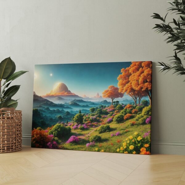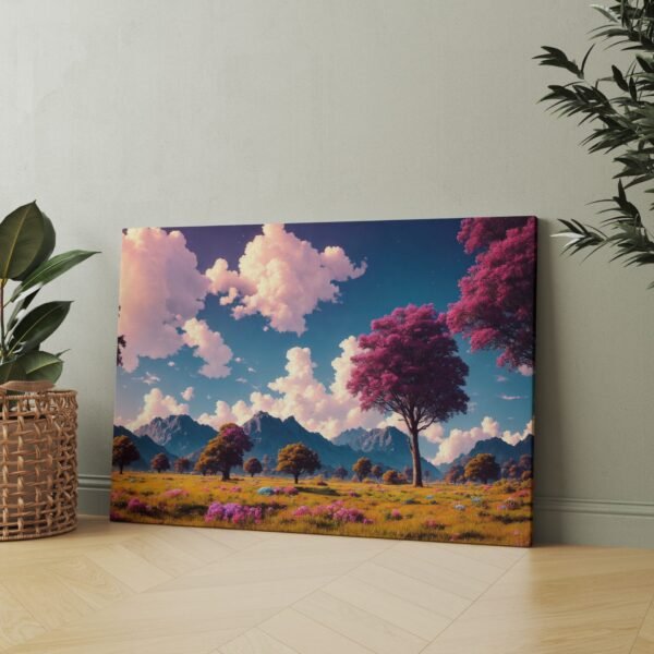 Vaizdas minimalistinis, bet labai architektūriškas – gamta čia atrodo tarsi sąmoningai sukomponuota. Žalia ir balta spalvų dermė sukuria švaros, gaivumo ir erdvės pojūtį. Šis paveikslas ant drobės – tai moderni gamtos interpretacija, tinkanti tiems, kurie vertina netradicinį požiūrį į kraštovaizdį.