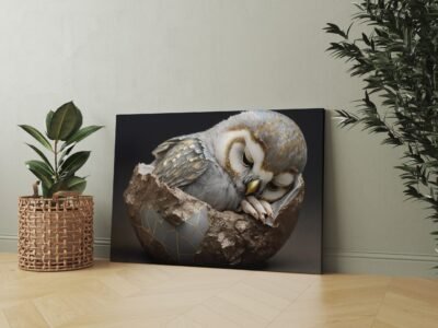 Tai paveikslas ant drobės, kuriame judėjimas susilieja su šviesa. Ryški, dinamiška kompozicija perteikia paukštės skrydį per stilizuotą, beveik architektūriškai sukonstruotą pasaulį. Sparnai išskleisti tarsi energijos bangos – turkio, aukso ir raudonos spalvos susipina į ritmingą vizualinę melodiją, kuri traukia akį ir kuria stiprų gyvybingumo pojūtį.