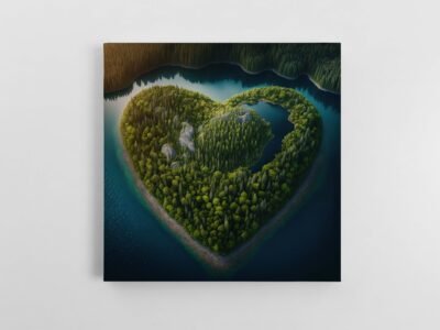 Šis paveikslas ant drobės atskleidžia vieną įspūdingiausių Lietuvos baroko architektūros ansamblių – Pažaislio vienuolyną, ramiai įsikūrusį ant Kauno marių kranto. Fotografija užfiksuota iš aukštai, todėl atsiveria visa komplekso didybė: simetriška architektūra, elegantiški kiemai ir aplink plytintis miškų bei vandens kraštovaizdis.